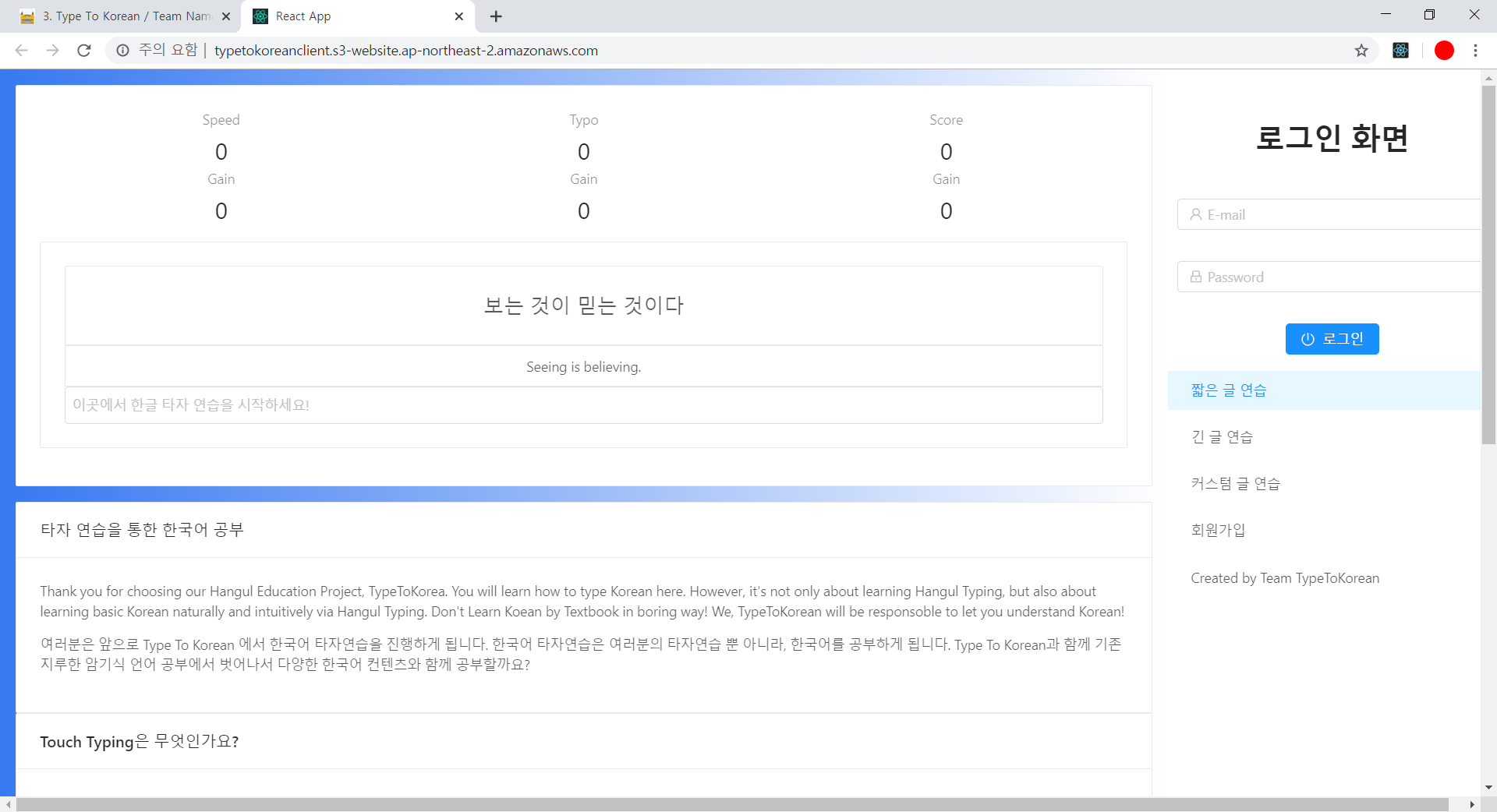 TypeToKorean 서비스 소개 ppt : https://slides.com/type-to-korean